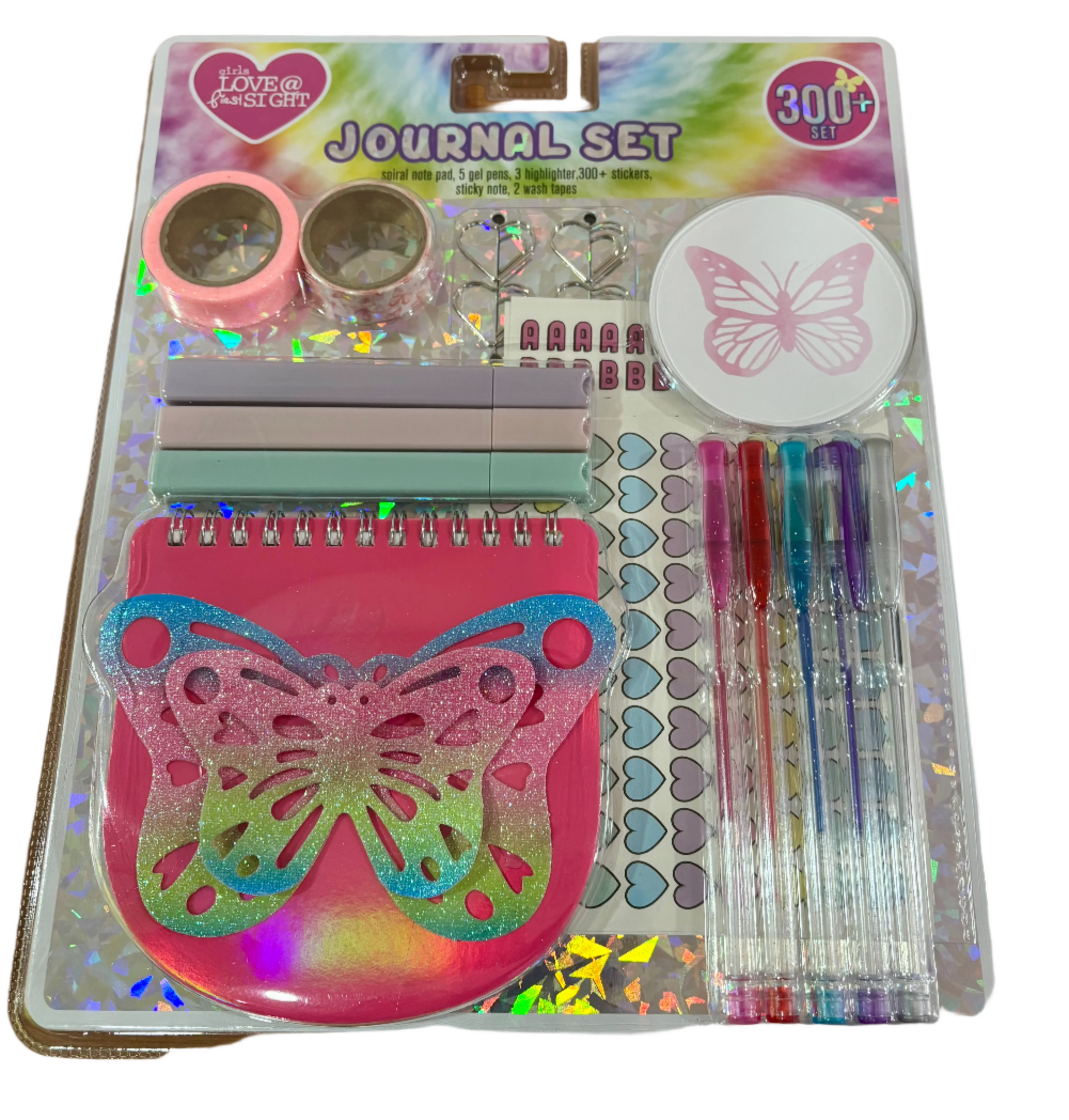 - Journal Set: Note Pad, 5 plumas de gel, 3 resaltadores, 300+ stickers, sticky notes, 2 wash tapes.